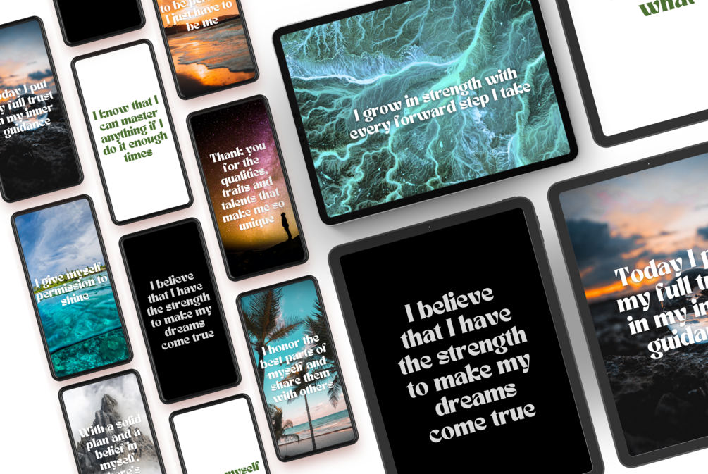 Putting affirmations on the background of your smartphone, tablet, laptop, or desktop or printing them on paper or a canvas (yes, you can use the PDF to print it where you like π€) whatever you want can help you remind yourself to proclaim the positive words over your life and mind.